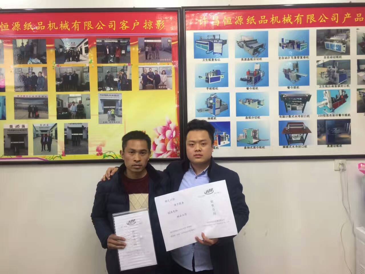 恒源的设备远销于各地,卫生纸加工设备也是恒源机械的主打设备。来自甘肃的魏先生年初的时候在网站咨询后,然后一直和我们杜经理保持着联系。杜经理的详细解答,使魏先生对于恒源的设备有了一定的了解,从开始的不懂到入门,对于恒源的设备非常的满意与期待。由于要过年事情太忙,一直没有时间来看机器,终于在2月份年后的一天,魏先生忙完手头的事情,来到我们恒源考察设备。卫生纸也一直是魏先生想要去加工的行业,他的高销量大市场,是他想要做卫生纸的最大原因。魏先生来到恒源,就立刻看了压扁纹卫生纸复卷机,在杜经理专业的知识解答、技术人员熟练的操作,给魏先生了进行了设备的操作和试机。现场的操作和讲解,让魏先生更加坚定了选择恒源的心。在午饭和杜经理吃过饭后,就回到厂里签订了合同,购买了1880压扁纹卫生纸复卷机。